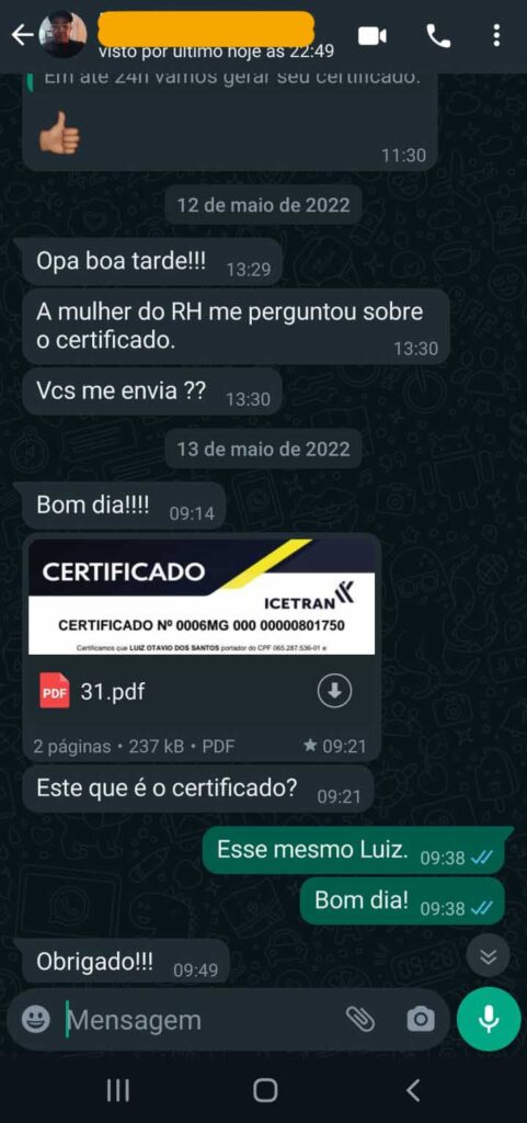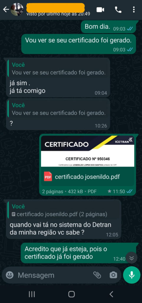 Quando concluir o curso, enviaremos seu certificado em até 48h ao Detran.